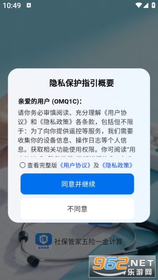 1、下载并安装最新版本软件,进入的时候需要先同意隐私权限。
