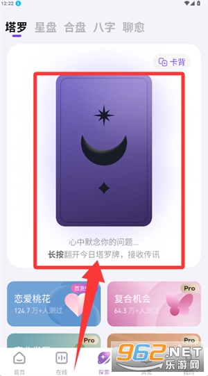 3、在塔罗页面长按卡牌,即可翻开获取今日测算内容。