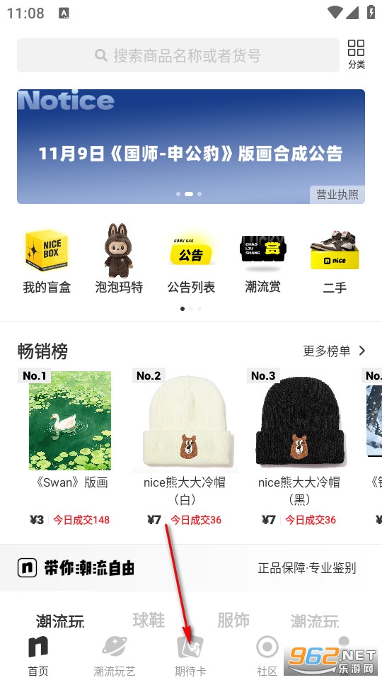 我们点击软件进入主页,在下方找到期待卡,点击。