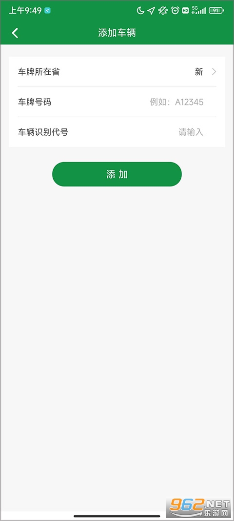 3、你也可以进行手动输入、输入省份、车牌号码和车辆识别代号。