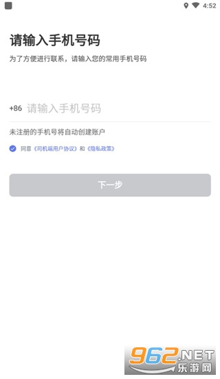 1、首先下载安装腾飞出行司机端app,打开使用手机注册登录;