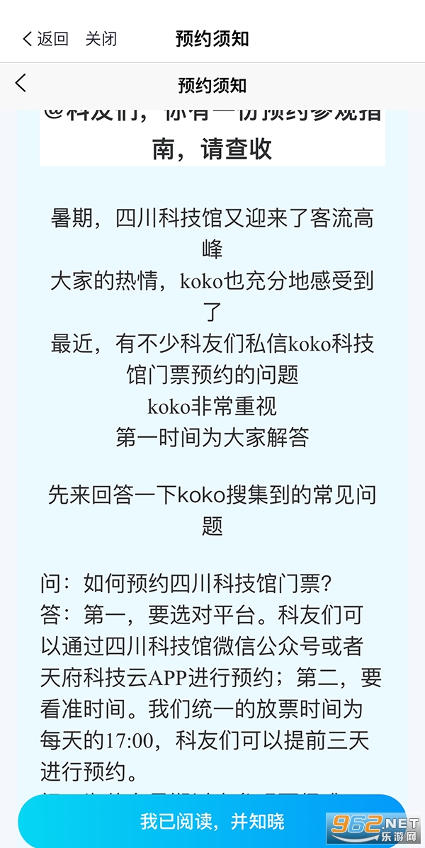 5、阅读预约须知,点击“我已阅读,并知晓”;