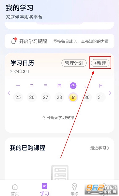 1、在购课后可以进行学习计划的制定,在学习页面点击新建。