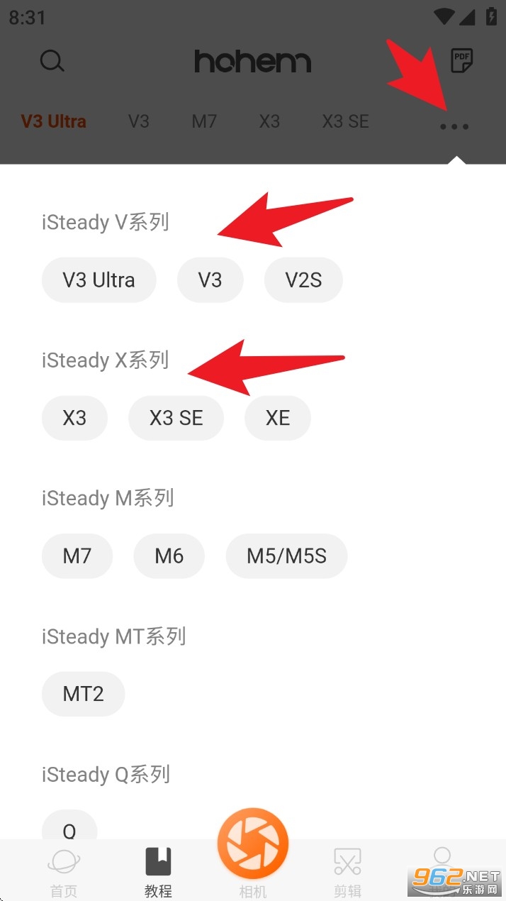 2. 若需查看不同型号的使用说明,可点击教学页面右上角的更多图示,切换至对应系列型号查看专属教学。