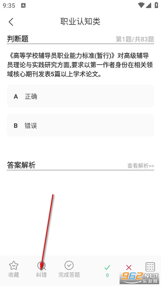 然后我们在练习题目的时候可以在左下方选择纠错题目。