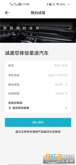 3、进入后输入自己的姓名和联系方式,然后选择车型和时间。