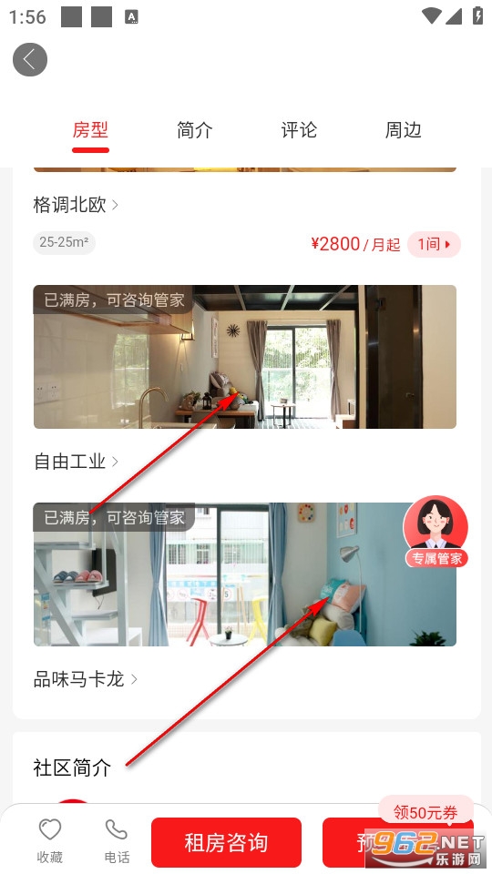 点击对应的公寓房间即可了解详情,右下角可预约看房。