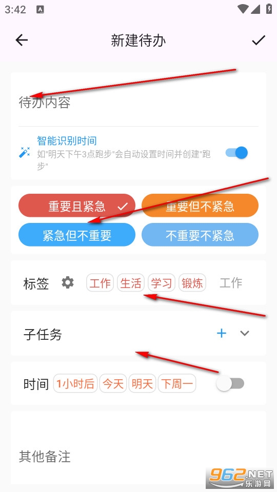 填写待办内容、紧急程度以及待办的标签等信息后点击提交保存。