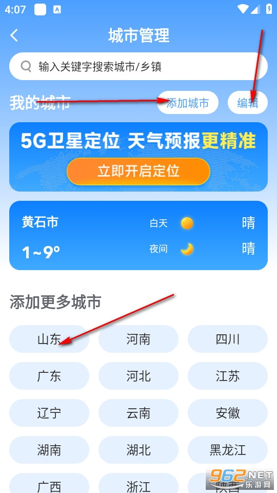 搜索城市或者直接列表添加城市,选择地区和城市然后添加。