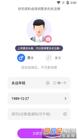 2、在完善资料界面完善你的详细资料,点击立即交友,成功注册账号。