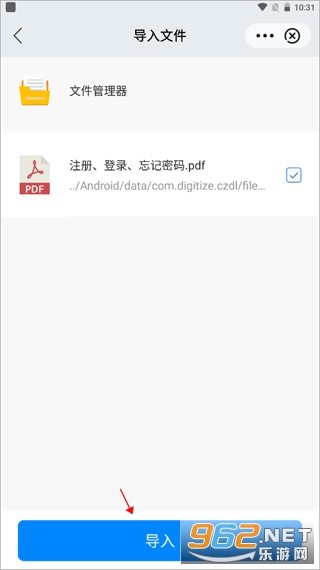 3、勾选你要盖章的文档,然后点击下面的“导入”按钮。