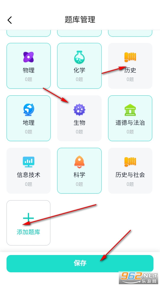 然后我们能够在题库管理界面选择自己所需科目,然后点击保存。
