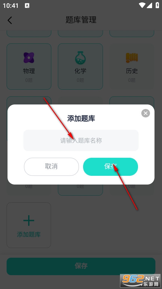 自定义添加题库可以输入信息后点击保存即可创建添加新的题库。