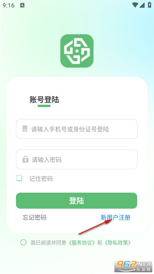 在登录界面登录按钮的下方找到新用户注册开始注册。
