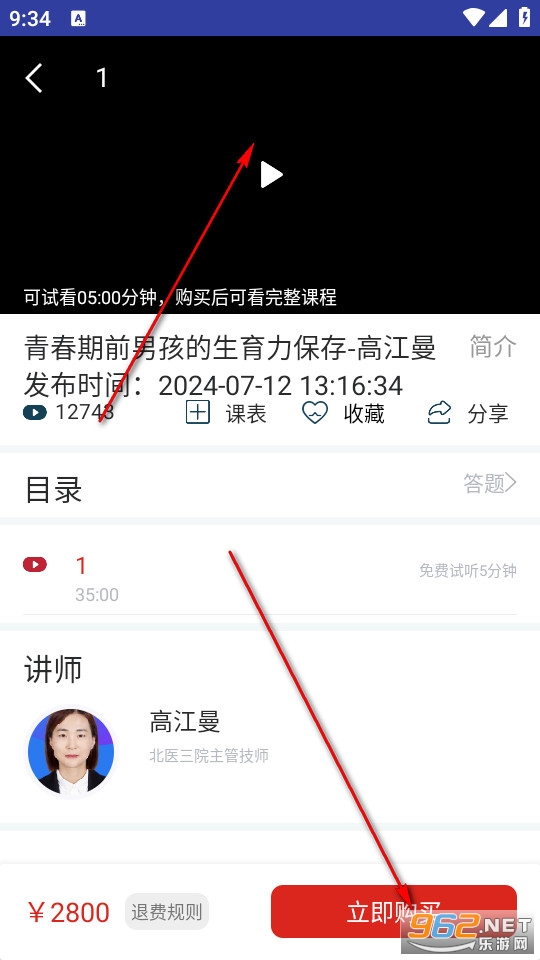 进入了解课程相关知识以后我们就能够点击观看了,能够在下方点击购买课程。