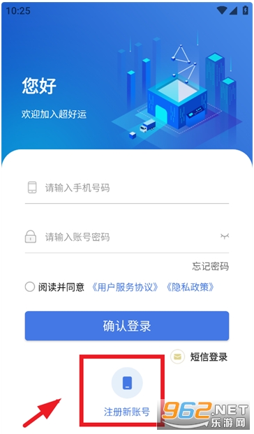 1、下载安装并打开超好运司机版app,进入登录页面后点击注册新账号;