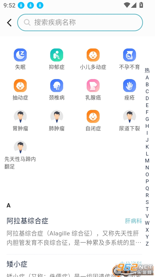 3、之后就可在界面中查看常见的疾病,点击“疾病”按钮来进行下一步。