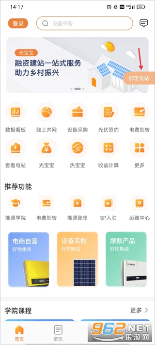 1、打开app进入到首页,点击右上方的“绑定电站”。