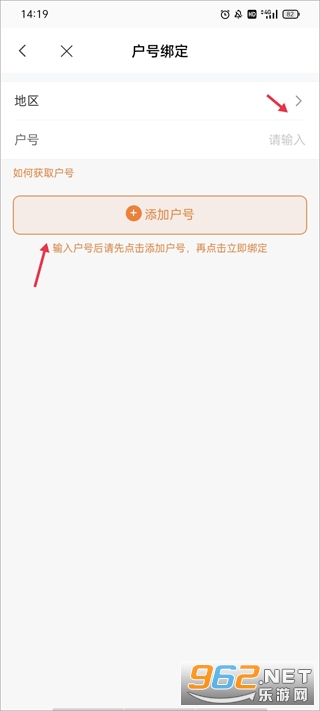 2、选择地区,输入户号,输好户号之后点击下方的“添加户号”,最后再点击立即绑定,这样就能绑定电站了。