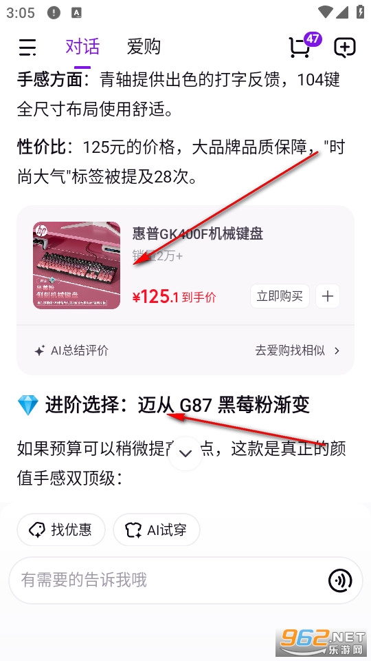 对AI智能导购功能的使用可以帮助用户精准购物,精准查找适合自己且自己想要的商品购买。