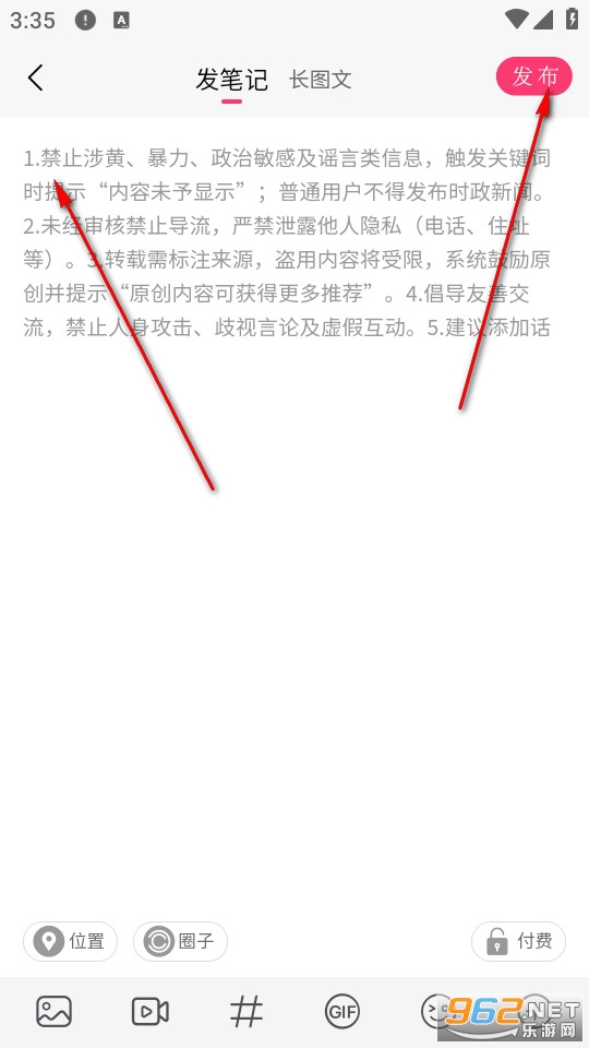 进入编辑界面点击空白界面即可开始编辑内容信息,然后右上角点击发布笔记。