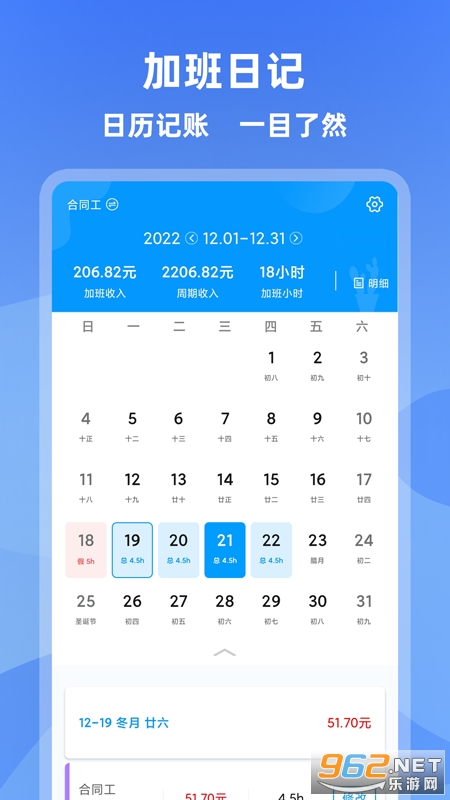 《记加班》是一款专为职场人打造的智能考勤管理工具,集加班记录、工资计算、考勤统计于一体。通过自动化算薪、可视化日历和个性化设置功能,帮助用户精准追踪加班时长,自动生成工资清单,实现"上班打卡-加班记录-薪资核算"全流程数字化管理,让每一份付出都有清晰回报。