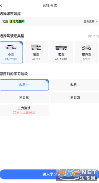 3、注册好了就可以进入备考界面,用户可以选择你的城市和考试科目。