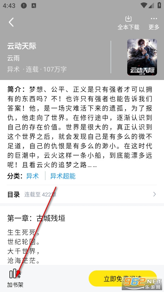 然后我们在小说详情页面的左下角点击加书架。