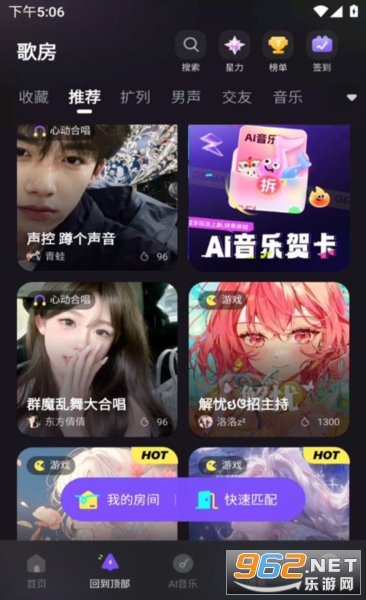 动态社交场景:开发心动合唱、歌手点唱、语聊派对等6大互动模式,通过智能声纹匹配算法推荐同频用户,支持创建主题房间开展剧本杀、音乐接龙等群体游戏