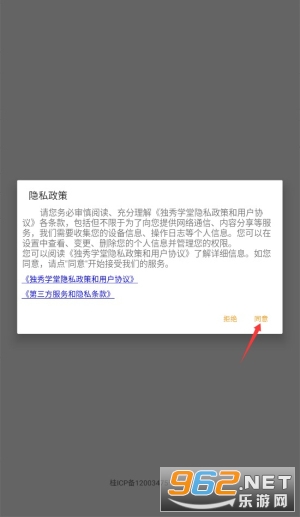 1、首次启动应用时,系统会显示用户协议和隐私政策,阅读后点击同意按钮进入主界面。