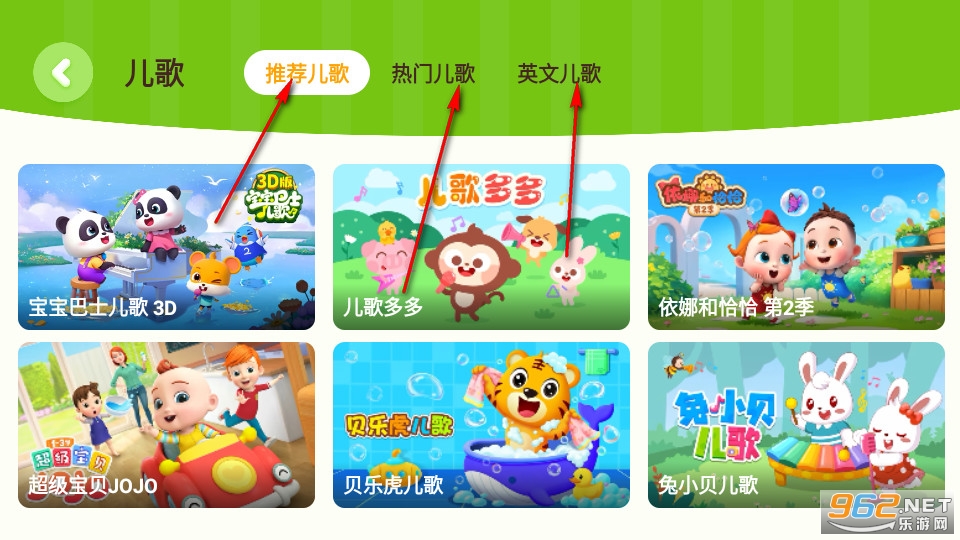 我们可以在儿歌分区上方选择自己想要听的儿歌分类,然后点击视频即可进入观看。