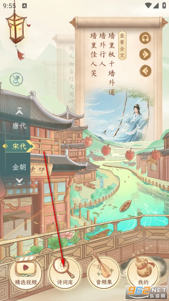 点击软件进入主页,我们点击主页下方的诗词库进入查询界面。