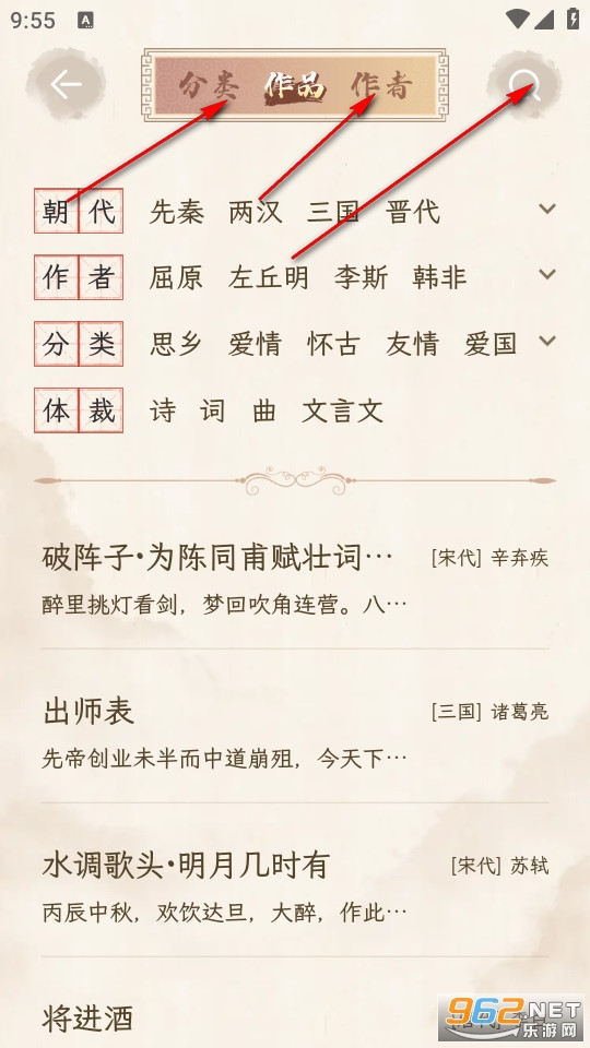 输入自己需要查询的古诗点击搜索即可搜索出诗词结果。