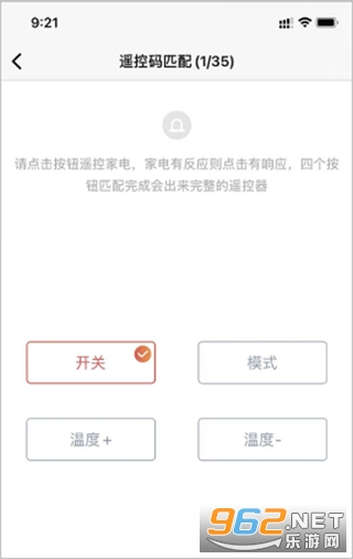 4、匹配加点,将遥控器对准家电点击按钮,四个按钮都要匹配完成;