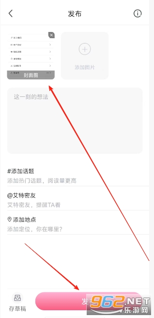3.最后在发布页面中输入文案内容、话题、地点等内容之后点击发布即可。