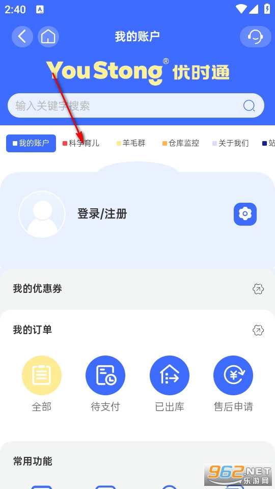 在我的账户界面点击分类科学育儿即可跳转至育儿知识界面。