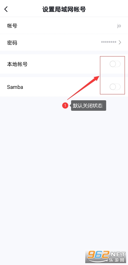 3、设置完成后,我们可看到当前本地账号和Samba默认为关闭状态,