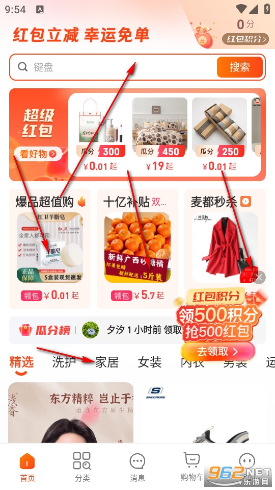 点击软件进入首页,有多种搜索商品方式,寻找自己所需商品。