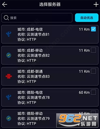 2、在服务器里面,都是国内的节点,并且标注出了与你的距离,默认会选择一个最近的距离。