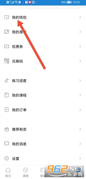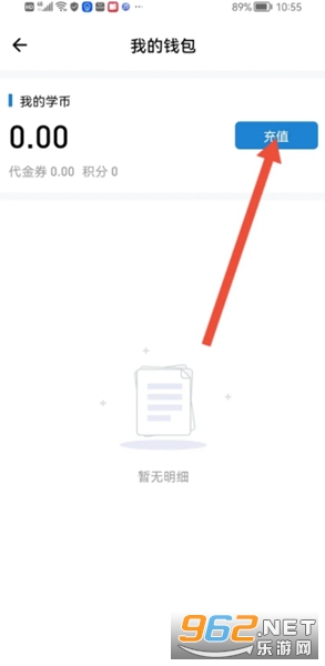4、进入我的钱包,然后在我的学币右边点击【充值】。