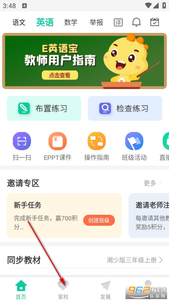 点击软件进入首页,点击下方的家校图标。