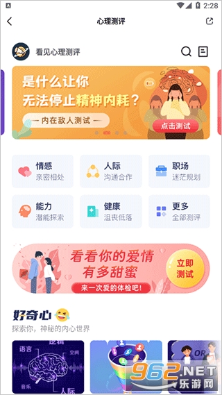 科学化心理测评:提供200余款专业测评工具,涵盖心理健康、人格特质、亲密关系等维度,基于MMPI、大五人格等经典量表研发,由国内外名校心理硕士团队校准,信效度获行业认可。