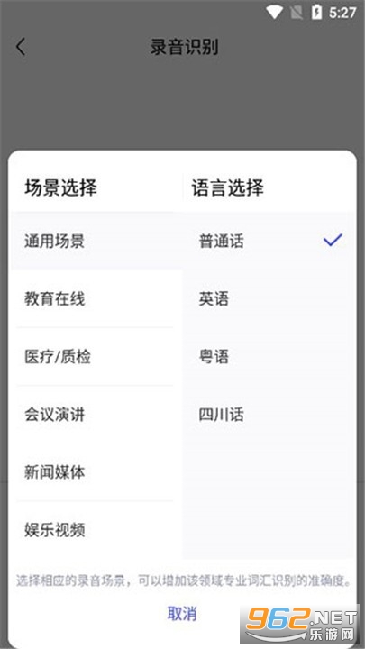 3、在录音前,你可以点击左下角的“设置”按钮,自定义选择合适的识别场景(如会议、访谈、课堂等),以及所需的语言种类(普通话、英语、其他外语等)。选择适合的场景与语言有助于提高识别的准确性。