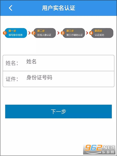 3、进入个人中心,点击左下方实名认证按钮,进入后先按照要求填写个人身份信息。