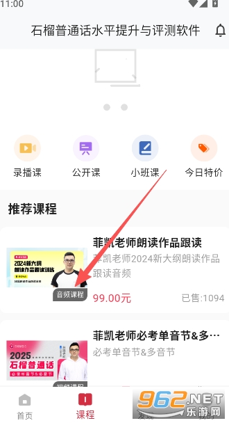 3、课程部分,以录播课、公开课、小班课以及今日特价等四个部分组成,下方还有专门的付费课程学习,都是精选推送给大家的,对大家的学习上有所帮助。