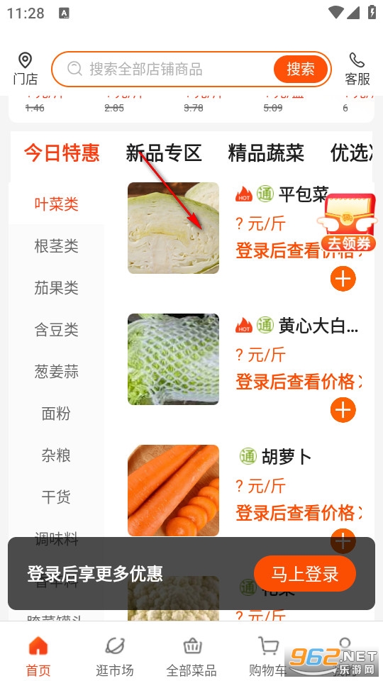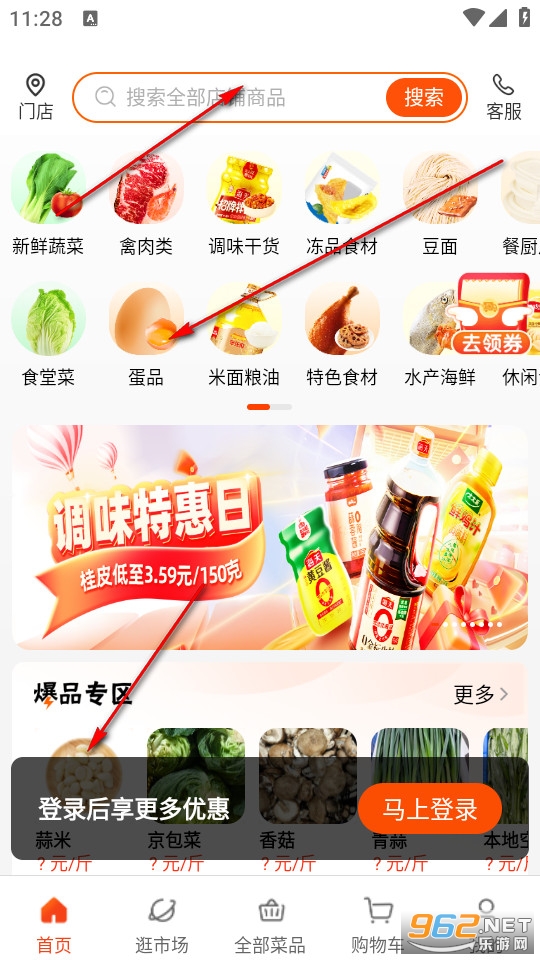 在首页搜寻所需采购的商品。