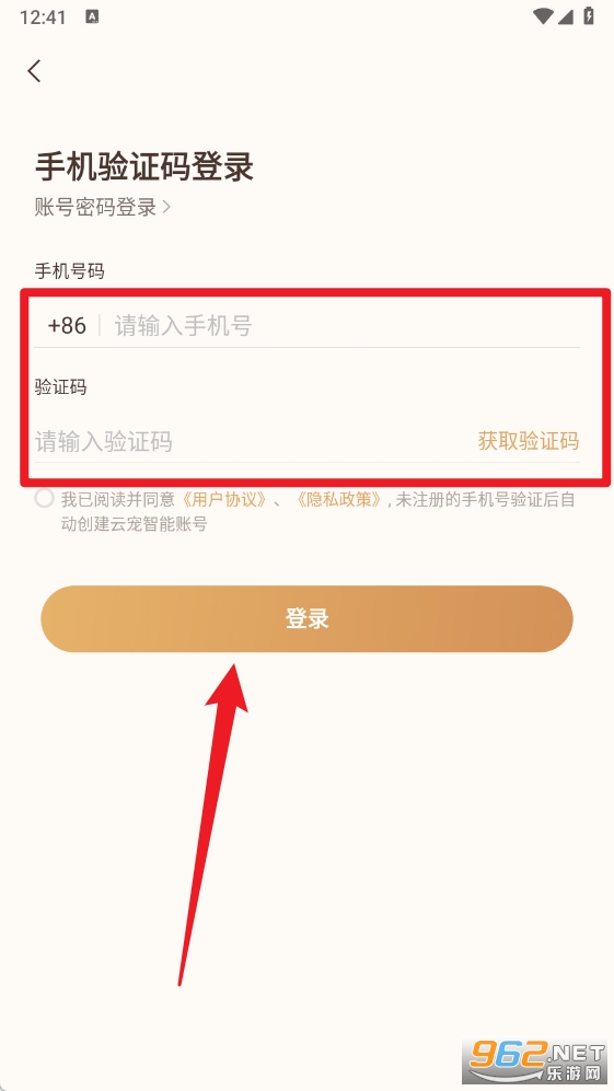 2、用户也可以选择手机验证码登录方式,输入手机号并获取验证码后填写完成,点击登录即可快捷进入。