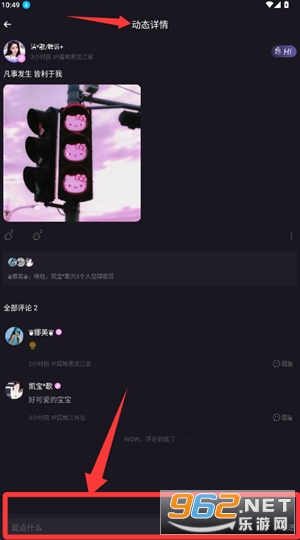 3、在动态详情页底部的输入框内编辑内容,即可发布评论参与互动。