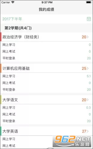 还可以继续点击每个课程进行详细的分数查询