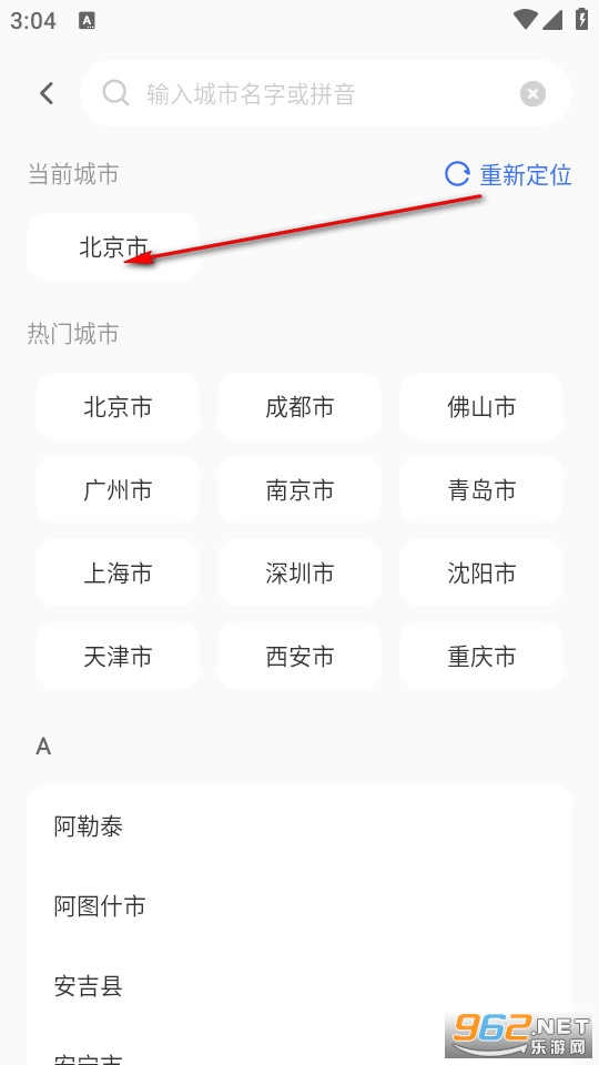 选择所在城市。